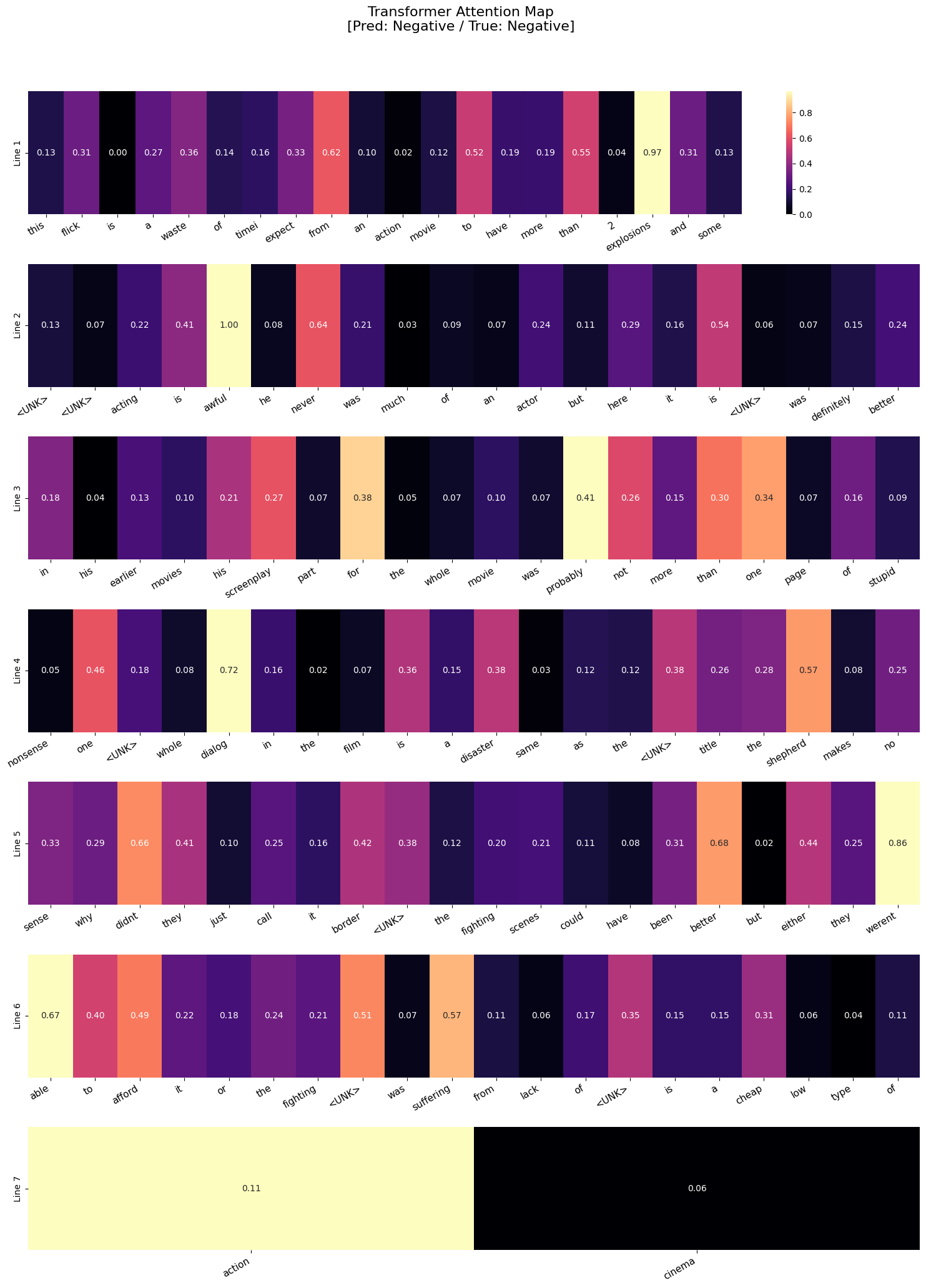 awful단어에 가장 높은 어텐션 가중치가 부여되었다. 이는 모델이 이 단어를 감정 분류에 있어서 가장 중요한 단어로 인식하고 있음을 시사한다. - 핵심 키워드: